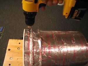 Permite perforar dos agujeros (broca #7 o uno un poco más pequeña y su línea de aire) por debajo del labio superior en los lados opuestos del cubo para las líneas de aire.