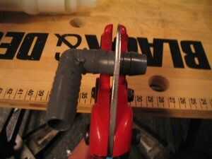 Instale los dos codos de tubería en tu gromits. Cuidado de no empujar su gromits por los orificios que ha perforado. Escupo sobre las barbas antes de instalarlos.