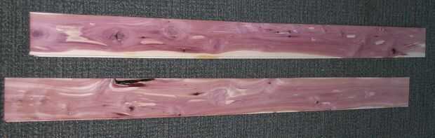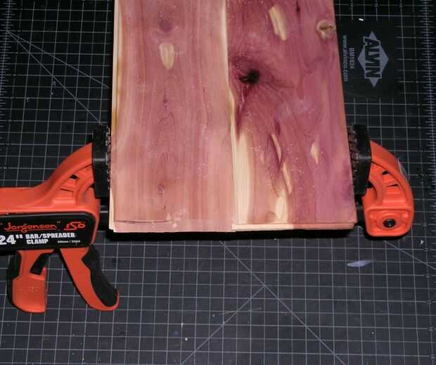 Primero la cara de las tablas fueron lijadas y cubierto con un Varithane plano para evitar de atraer la grasa y la suciedad a través de la manipulación y para resaltar el color del cedro.