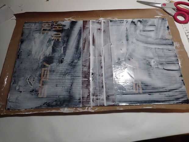 Coloque el lado del pegamento hacia abajo en la cubierta de papel que previamente ha doblado.