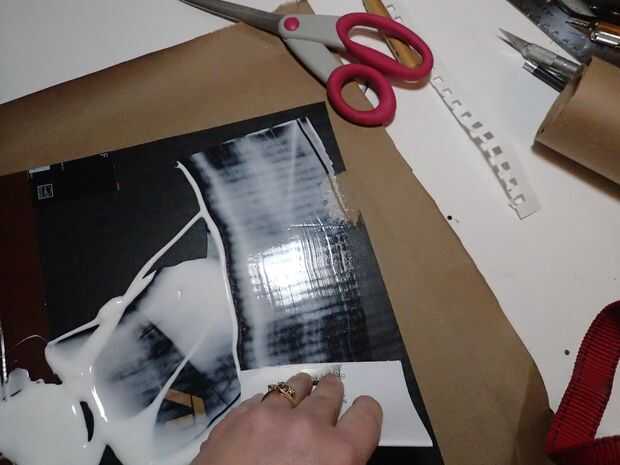 Tomar la cola de blanco - PVA - Mod Poge de su elección y extender una capa sobre un extremo de la cubierta de la carpeta.