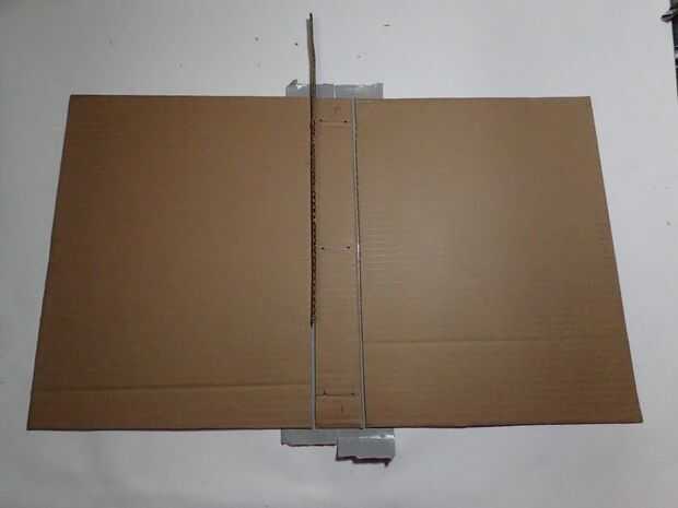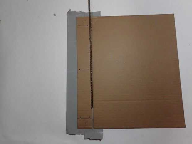 Para fijar las placas de cubierta con las cintas de bisagra necesita un trozo de cartón como espaciador.