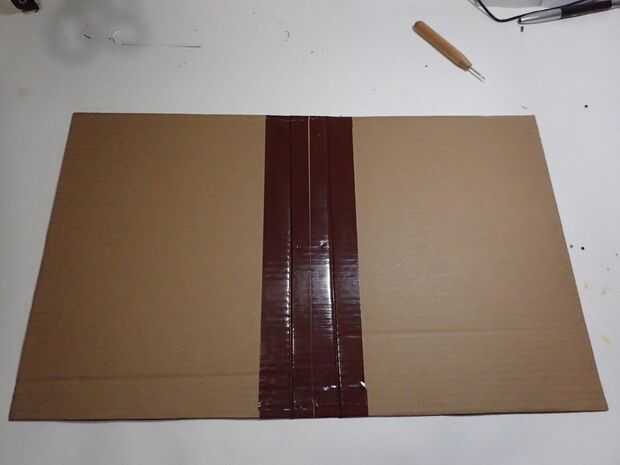 Tomar 2 piezas de cinta adhesiva y cubrir el interior la espina dorsal y sobre la brecha a la Junta de la cubierta en ambos lados. Esta cinta debe ser apenas más corta que la altura de la cubierta.