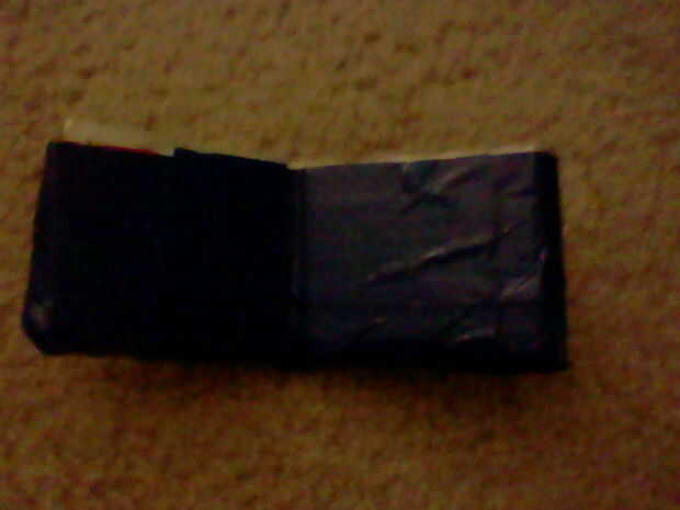 Es hecho de sólo signboad y cinta adhesiva. El problema de olny es no es bolsillos de tarjeta de crédito.