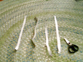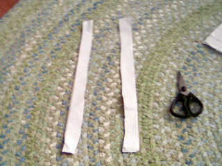 OK esta parte es difícil de explicar así que escucha atentamente. En primer lugar pedazo de cinta adhesiva que es aproximadamente un pie largo y de la endecha en el lado pegajoso de la tabla para arriba entonces tomar otra pieza del mismo tamaño y la pongo en la parte superior un lado pegajoso por lo que cada lado no es pegajoso. Después de corte la tira a la mitad luego corte las mitades por la mitad para hacer 4tas.