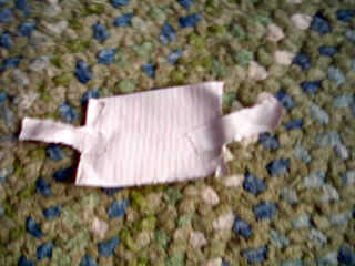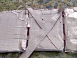 Tomar dos correas y recortar a cerca de 6 pulgadas y ponerlos en la próxima Plaza en una formación de x luego con cinta adhesiva hay. Ahora hacen un pequeño trozo de cinta adhesiva y puso tres trozos más pequeños y seguro a la siguiente casilla. (u puede ver la foto).