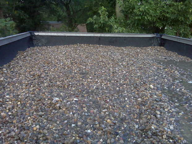 Lamentablemente, no pude hacer la instalación de desagüe estanco. Cemento de techo puede haber sido beneficioso aquí en grandes cantidades. La buena noticia es que parece que la fuga sólo alrededor del desagüe, por lo que moviendo la tierra y la grava del camino para tratar de mejorar las condiciones de posible. La mala noticia es que probablemente no tengo a él hasta que es demasiado tarde y el techo ha descompuesto a caído la grava y el suelo en todo el interior.