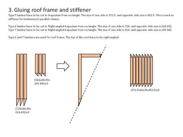 Madera tipo 6 y 7 se utiliza para la estructura del techo. La parte superior de la raíz debe ser en ángulo derecho.