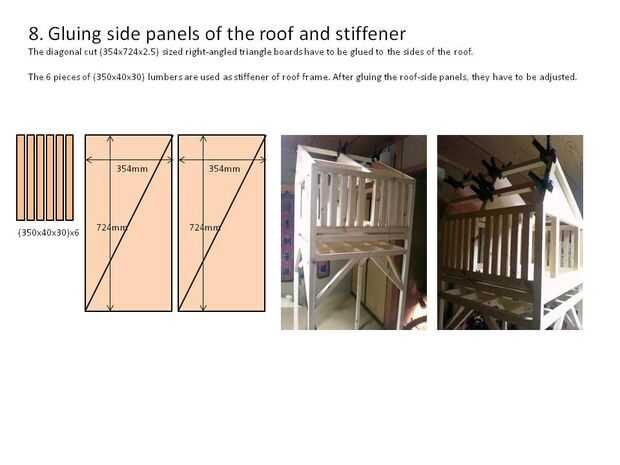 6 piezas de (350 x 40 x 30) explota los árboles se utilizan como refuerzo de la estructura del techo. Después de adherir los paneles laterales de techo, tienen que ajustarse.