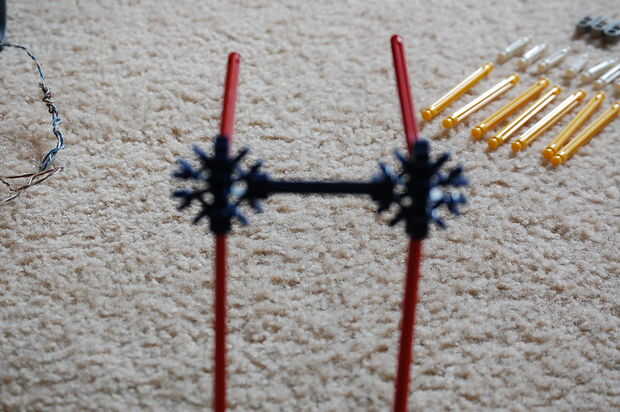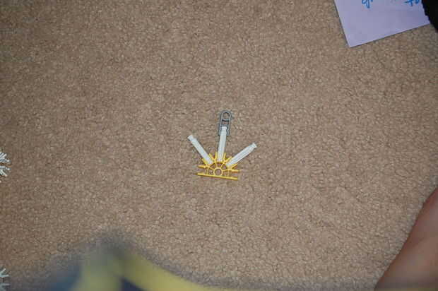 Echa un vistazo en este instructable para saber cómo hacer una catapulta de reciclado.Paso 1:Primero cortar la parte superior de una botella grande. Debe verse así.Paso 2:Cortar 8 líneas hacer un +. Cada corte debe parecerse a esto.Paso 3:Poner las g