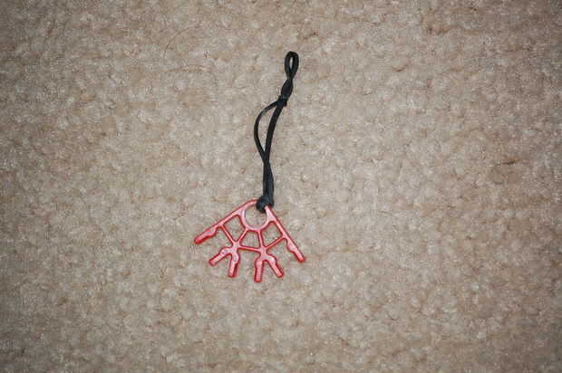 ate la pequeña banda de goma por el agujero de la clavija roja y atar alrededor del mismo modo que puede enganchar en