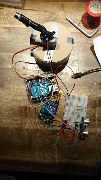De sonar es op de aangesloten de geplaatst op het experimenteerboard en de Arduino.