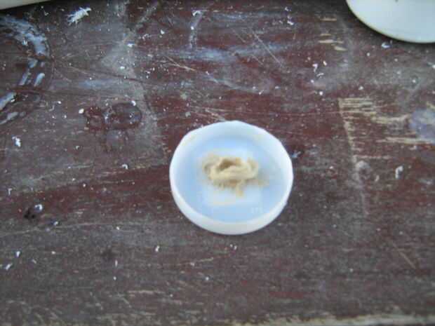Añadir un pegote de pegamento (clavos líquidos) y pegar a la cabeza de pistón de la estructura de la masilla.