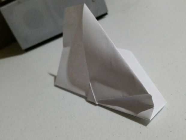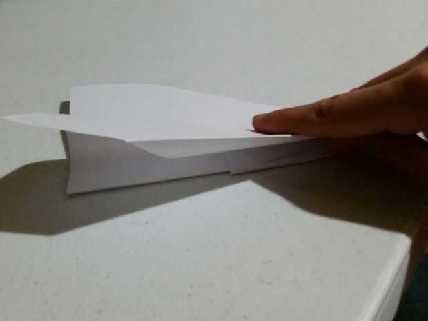 este es uno de los mejores aviones de papel que he hecho. Es moderadamente sencillo doblar y un volante muy bueno. Es un planeador suave con un frente "plano" por lo que si se cuelga alguna vez el frente no arruga para arriba como lo haría en un