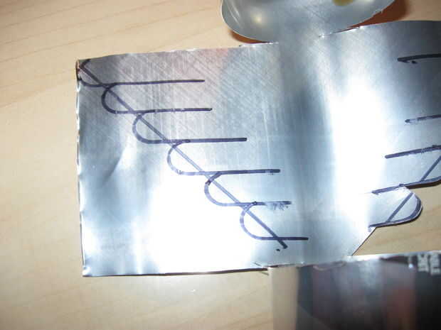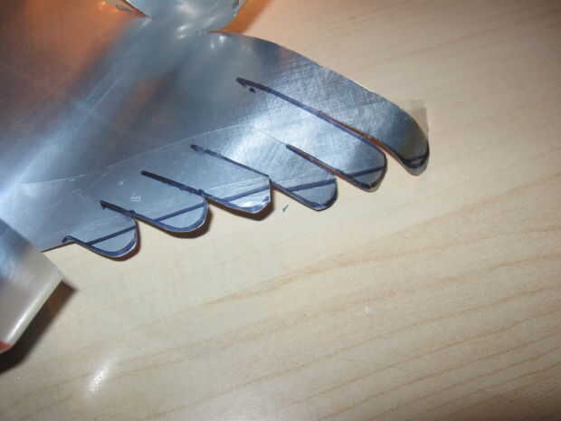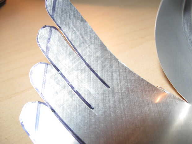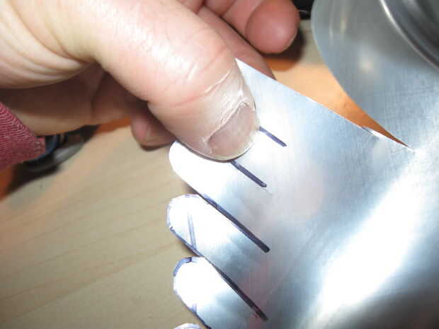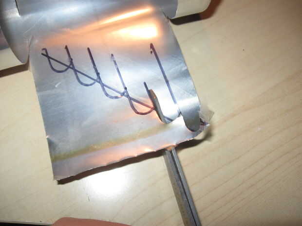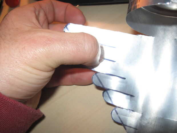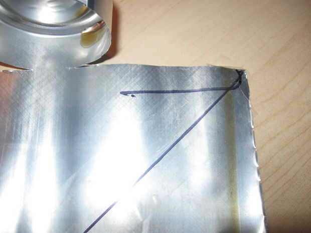Corte a lo largo del contorno entonces aproximadamente una pulgada hacia adentro de la línea diagonal.