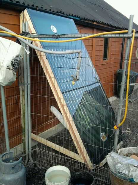 El calentador es grande pero por el momento sólo un bulto caliente grande de partes. Me decidí a montar en un marco de libre (otros instructables montaje directamente en la pared). Obviamente quería la unidad a ser tan eficiente como sea posible por lo que puse en la cara sur de la nave y después de una rápida comprobación para mi latitud (Dublín, Irlanda) encontró que 35 grados es el ángulo óptimo para un panel solar (esto va para aire y calentadores de agua, así como células fotovoltaicas)