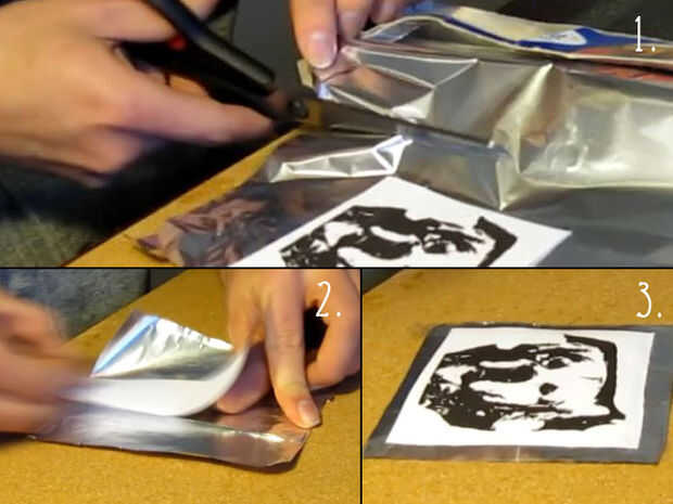 "2." aplicar una segunda capa de aluminio usando cinta de aluminio. Esto es para hacer la lámina más estables y menos propensos a perder su forma corte y usando la linterna.