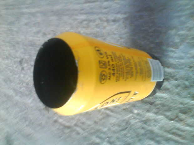 En otro puede cortar la parte superior e inferior de la lata y su longitud de la raja para que se quede con una pieza plana de acero fino, esto servirá para hacer el adaptador para sujetar el ventilador canalizado a la cámara de combustión.