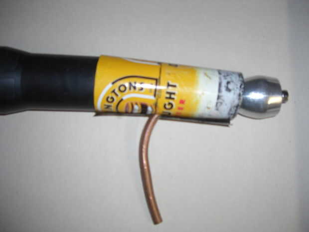 Dibujar líneas en el tubo donde la superposición es y cuánto es el mínimo y máximo saliente. Ahora deberás tomar otra vez la puede apagar el ventilador canalizado y encontrar una broca del mismo diámetro que el tubo de cobre de 10-15mm. Mina fue 12 mm. pinza un trozo de madera en la prensa y perfore un agujero en el tubo en la Unión. Corte cualquier exceso en el interior del tubo dejando el traslape mm por lo menos 15 y poner un corte en uno de sus agujeros, uno más cercano al borde para que pueda moverse el tubo de cobre en él sin roscar a través.
