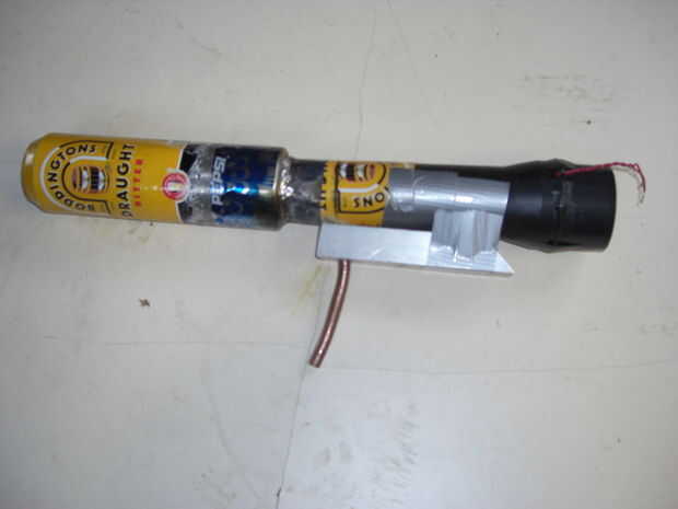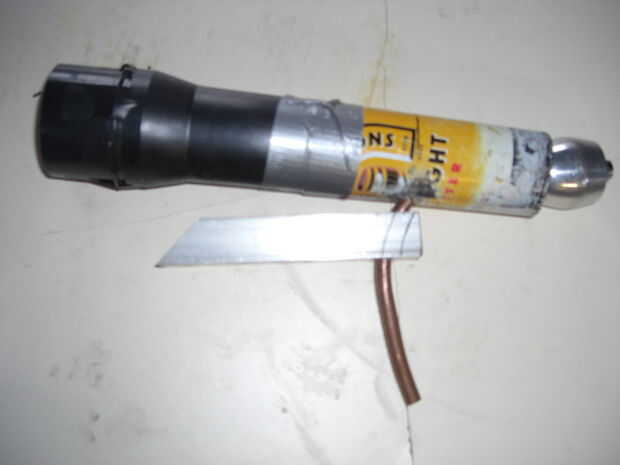 Tomar un trozo de la chapa de una lata que lleva abrigo de corte extremo abierto alrededor de su ventilador canalizado escape asegurar en su lugar con un pequeño trozo de cinta. Luego ponga el otro extremo a la entrada de su cahmber de combustión como se muestra en un cuadro abajo. Ajustar la chapa que esta ahora envuelta en un tubo hasta que es un ajuste apretado en la entrada de la cámara de combustión y permite un pequeño ajuste puede cambiar cuánto sobresale en la cámara de combustión por alrededor de una pulgada.