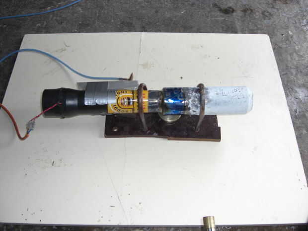 Asegure el motor por ejemplo en un tornillo de banco o en la silla como la hizo que pronto subiré las instrucciones para. Enchufa la energía, tubos de combustible y ponga su equipo de seguridad. Hacer una verificación de último minuto que todo es derecho, que no hay haya fugas en la línea de combustible, y que la electrónica está correctamente aislada y han sido revisadas por un electricista calificado. Asegúrese de que el motor está muy bien fijado y que le hombre en el stand de con el extintor, un chico para cortar la energía si es necesario, uno para la prueba de la película y uno en soporte de comprar con un teléfono en caso de que algo va mal.