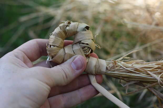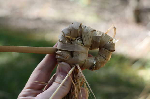 Porque esta es la base de la cesta, puede desea doble envoltura más de lo habitual. Esto mantiene firmemente la parte inferior de la cesta y evitará pequeñas semillas o bayas que resbale entre las bobinas.