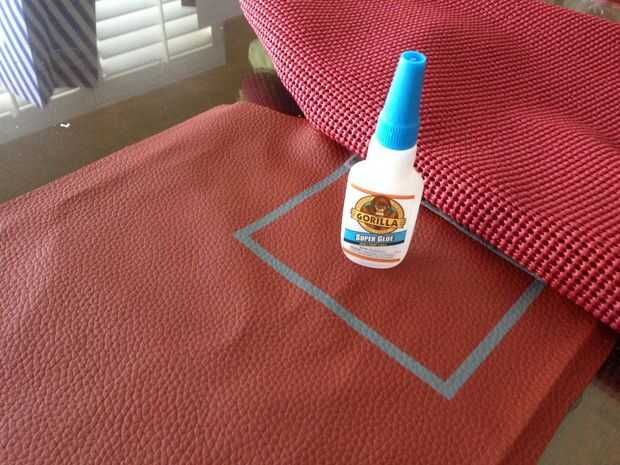 -Comenzar pegando abajo el revestimiento de la repisa con pegamento. Utilice una brocha para aplicar el pegamento uniformemente sobre la tela. NO solo arroje a chorros y prensa, terminarás raro aire con protuberancias. Trabajo en pequeñas secciones y presione hacia abajo a medida que avanza. Abandone el área alrededor de los bolsillos sin pegar.