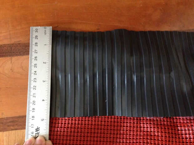 -Ahora harás tu propia banda de cadera. Tome su estera de goma corrugado y cortar en tiras ancho del dos 5". Super unir esas dos tiras en una tira de 5 "x 50" ish.