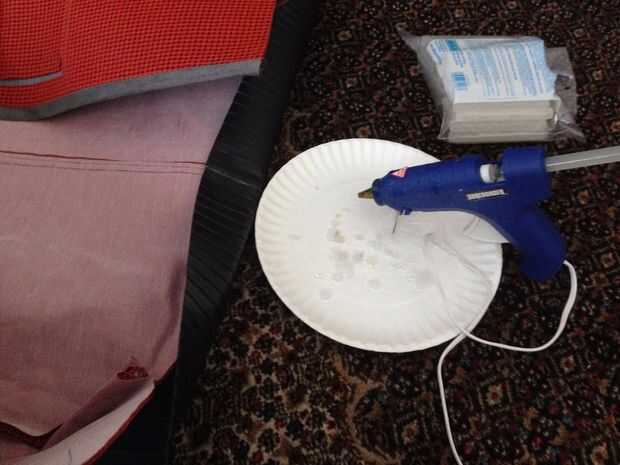 -Una vez seca la tira, la porción pegada en la parte posterior de su chaqueta el centro y doblar la tira por la mitad alrededor del borde inferior. La tira en lugar de pegamento caliente.