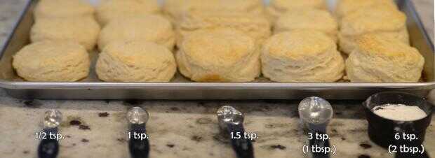 Conclusión: Más polvo de hornear hace la subida galleta más (¡ Imagínese!). Aproximadamente 1 cucharada de polvo de hornear por 2 tazas de harina parece ser sobre la cantidad adecuada, pero incluso reducir a la mitad o duplicar esta cantidad no debe arruinar tus galletas.