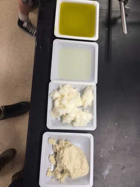 El primer paso es seleccionar los ingredientes. Para el jabón que hemos hecho, hemos utilizado el aceite de coco, manteca de karité, aceite de oliva y aceite de canola.