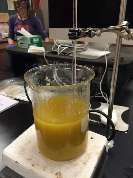 Al añadir la lejía a la mezcla de grasas, comienza el proceso de saponificación. Las grasas dentro de la mezcla de todas tienen la estructura de un triglicérido, que es tres cadenas del ácido graso Unidas junto por un glicerol. Sin embargo, cuando se añade lejía, cambia la estructura de los triglicéridos durante la reacción y los productos de un glicerol y jabón. La reacción va como (si se usa hidróxido de sodio): una molécula de grasa reacciona con tres moléculas de hidróxido de sodio para producir un glicerol y tres moléculas de estearato de sodio o jabón.
