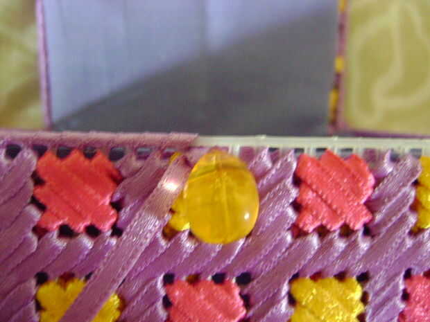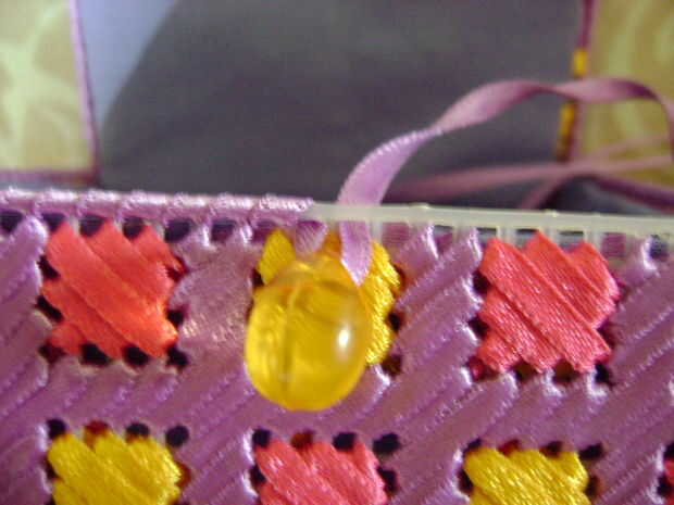 Al llegar en medio cuadrado amarillo de pieza 4, Únete el grano y fijarlo pasando una y otra vez.