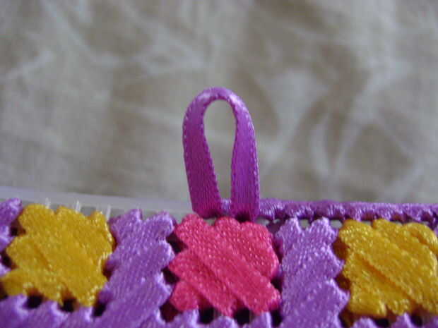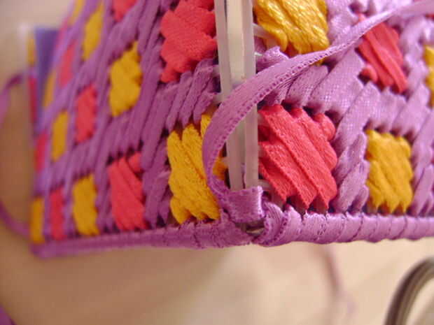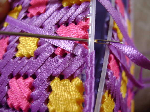 Llegar a media Plaza Rosa de la pieza 1, hacer un lazo para el grano (verifica el tamaño de grano pasando a través de ella y un poco más) y asegurar envolviendo a veces 2 o 3 de la cinta (pero sin hacer un desastre de él). Envuelva el resto de la pieza 1 y fijar la cinta en el extremo en la esquina, pegar la cinta extra dentro.