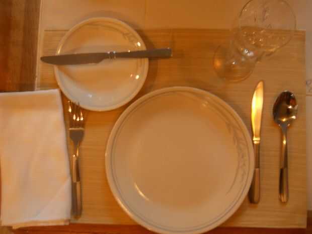 Un tenedor y el cuchillo van en lados opuestos de la placa. Se supone que corte con el cuchillo en su mano derecha y puñalada en la comida con la izquierda.