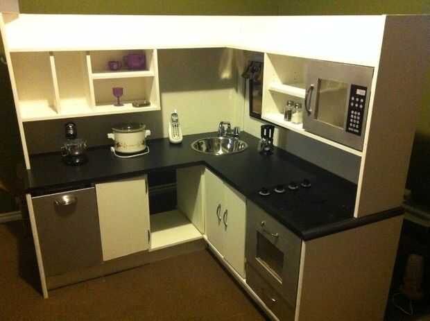 Mi niña está creciendo y yo quería hacer una pequeña cocina para jugar con. Había oído hablar de gente volviendo viejos centros de entretenimiento cocinas y decidió probarlo. Mientras estaba midiendo para ver lo que le ajuste vi mi escritorio de la esquina y lo sabía sería perfecto para este proyecto! Pedí a mi esposo si él fue unido a la mesa, y aunque él era renuente aceptó finalmente dejarme cortar para arriba.