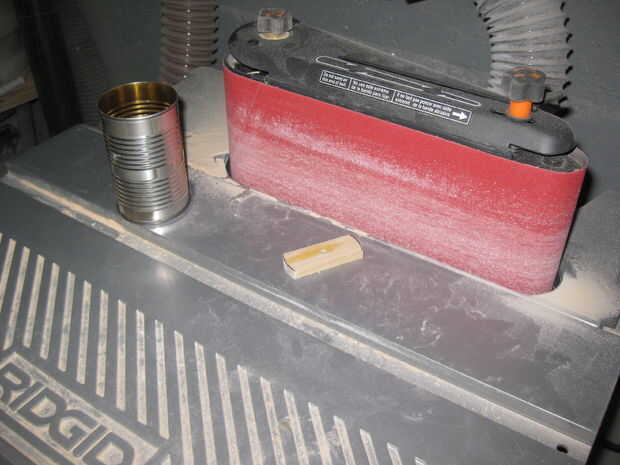 usé una sierra de cinta y una lijadora de banda oscilante. Podría usar una sierra de mano y cualquier lijadora o simplemente una lijadora o a papel de lija incluso. Me infiltró para arriba en la línea y mantiene el ajuste de prueba. Peor de los casos, usted tiene que hacer una pieza nueva.