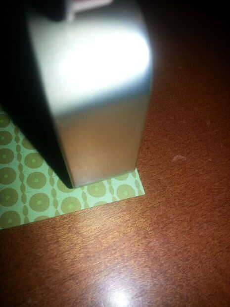 Cortar los bordes a la línea de la caja interna. Trace el ancho de la lata y luego dibujar líneas rectas en ese ancho con un borde recto. Corte y caliente pegamento dentro de la bandeja.