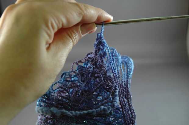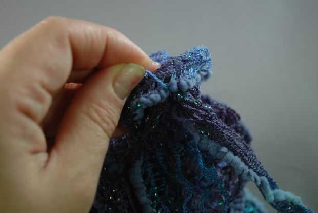 - Llevar la punta de la lana a través de la última puntada y tire firmemente (Foto 8).