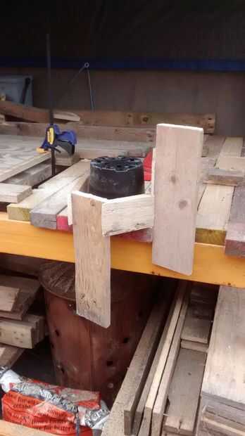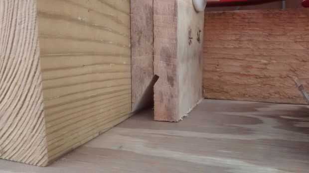 Este trineo trabajado admirablemente y me un pedazo en ángulo que fue aproximadamente la mitad una pulgada demasiado largo (así que corte el resto de mis acciones 2,75" a 6.5" en lugar de 7") producidos y tenía una geometría algo útil (accidental). Mi sierra circular no llegar a todos a través de la pieza de trabajo y un labio en el extremo del ángulo corte a la izquierda. Esto me permitió conlleva todos los módulos de asiento. Un accidente feliz de hecho. Estas brocas encaje me mostró que las piezas laterales también asomaba más allá de la parte delantera de los montantes, por lo que sería necesario cortar.
