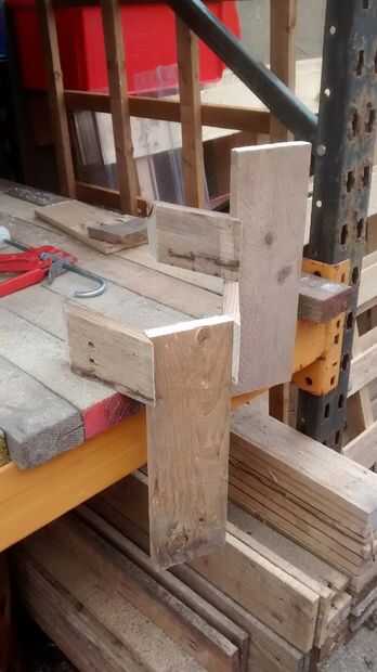 Para cada unidad, necesitaba 1 x 11" por 3.5" pieza y 4 piezas de ángulo. Cada pedazo en ángulo comenzó en 6.5" por 2,75", luego se realizaron dos cortes de 30 grados en ángulo, y luego con un final cut para hacer el ángulo frontal quede al ras con el nivel del vertical (ver al finales dos fotos de este paso).