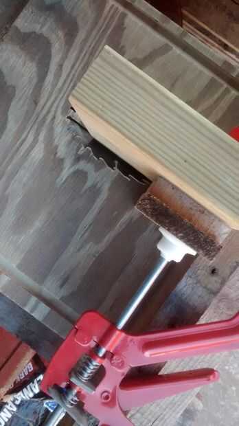 Me tomó un poco de esfuerzo y varios intentos para construir una trineo/plantilla que estaba contento con producir los cortes que necesitaba conlleva. El monstruo resultante se muestra en las fotos para este paso. Su esencia un trineo corte transversal normal, con un montante atornillada a él como cerca de la cuchilla como podía salirse con la. Para usarlo, sujeta la pieza de trabajo entre una tabla de sacrificio y el vertical. La tabla de sacrificio es para evitar marcas de la pinza sobre la pieza de trabajo y para que deje de astillar más de lo necesario.