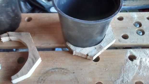 Cada corsé hizo de 2,75" 6.5" longitud de tabla y fue cortado con dos ángulos de 60 grados. También corté un círculo en el interior para permitir que mis macetas para sentarse cómodamente en ellos. Estos también me dieron un lugar práctico para colocar un estante para sostener las ollas... Estos frenos no son ideales, porque dos de los tornillos para sujetarlos apuntan en la misma dirección que el grano. Taladrar agujeros piloto y va un ángulo aquí ayudó a.