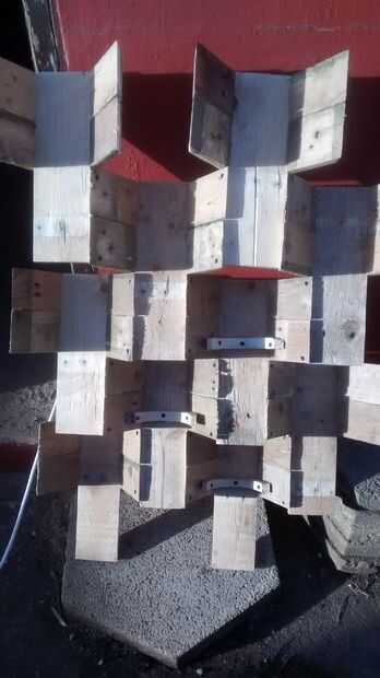 Cada módulo fue pegado por separado, con clavos tachuela para mantenerlas hasta que el pegamento seca. Ellos se sujetaron según sea necesario en esta etapa hasta que se seque. Cada módulo fue atornillado a otro con un tornillo de yeso de 25mm por cada pieza de 'lado' (un total de 4 tornillos por módulo).