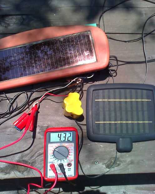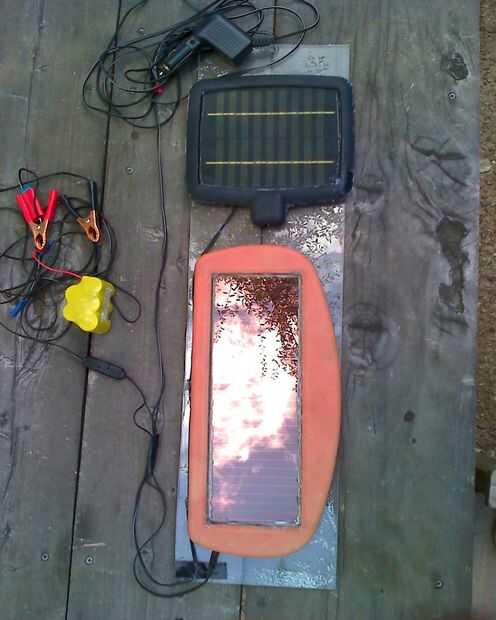 Conectado los paneles en paralelo y el conector y el cable desde el cargador a un conjunto de pinzas de batería.
