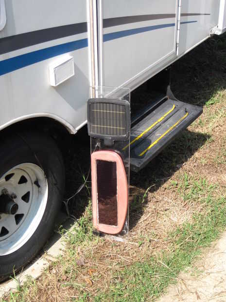 Tengo el ventilador tira aire frío en mi caravana a través de un tubo de almacenamiento que fue pensado para almacenar una manguera de desagüe pequeño (que nunca ha almacenado una alcantarilla de la manguera).