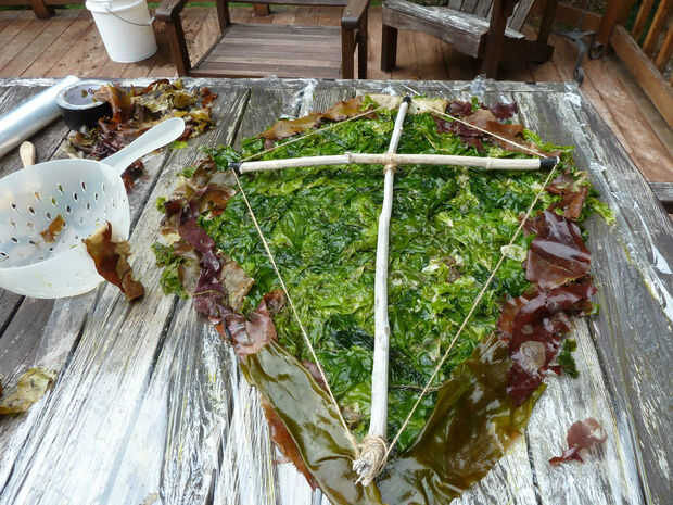 cuando yo era un niño creciendo siempre fue el mejor lugar para volar una cometa en la playa. El poderoso viento del océano mezcle cuidadosamente mi cometa en el cielo y luego convertirlo en un ballet de bucles y giros. Cuando estaba caminando a lo largo de la costa de Alameda en San Francisco el otro día, vi un puñado de piezas de madera fina y hueco en la orilla. Esto generó la idea de crear una cometa completamente procedente del océano. Fui volando a Boston el próximo día, así que burbuja envolvió el driftwood había recogido, y después de que algunos confundidos y tal vez refiere miradas de TSA que hice hasta el Atlántico. Visité Revere Beach con un amigo y recogió dos cubos llenos de algas verdes y marrones. Procedí a construir el esqueleto de la cometa de madera y cordel, desarrolló la vela por capas y pegar las algas y luego montar la vela con hilo de coser verde. Surgió un poco más pesado de lo que quería, y sin duda lo haría diferentemente una segunda vez (ver último paso), sólo fue realmente capaz de ' volar ' (o debería decir flop alrededor) un poco debido al fuerte viento. He recibido algunos consejos de usuario Kiteman sobre cómo podría mejorarse el diseño. Evidentemente este proyecto no es convencional, ya que es muy fácil de hacer una cometa mucho menos tiempo y más funcional, pero quería hacer algo un poco diferente y aprender en el proceso. ¡ Espero que lo disfruten!