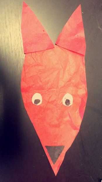 Al agregar en su cabeza de zorros en el cuello que no quiere que ser justo en el borde, pegamento en unas cuantas pulgadas en el cuello. Al hacer la cabeza solo recorte en forma de triángulo redondeado. Añadir orejas de triángulo, y ojos de círculo blanco, con círculos negros pequeños, luego agregar una nariz de triángulo negro.