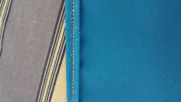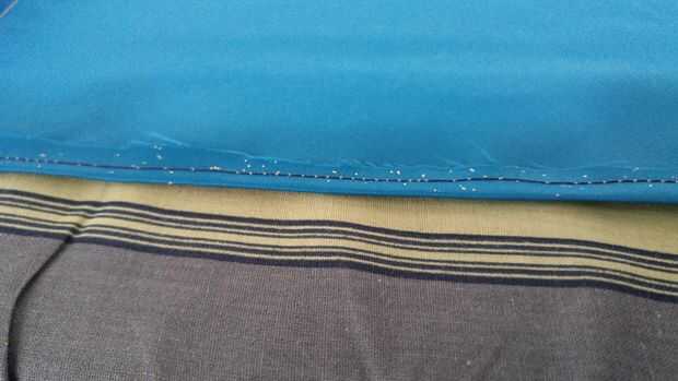 Transferí el diseño básico sobre el material. He doblado los bordes y había les había cosido. Les pliega entonces otra vez. Espero que esto evitará que el material se desgaste excesivamente.