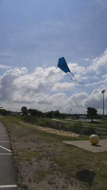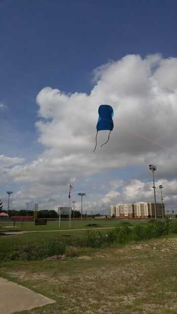 Usé otro carrete de línea de Aparejadores como mi hilo de cometa. Sólo tomó un poco de viento de Levante. Como se puede ver en las fotos, el viento hace que la forma de cambiar con frecuencia. Vuela muy bien.